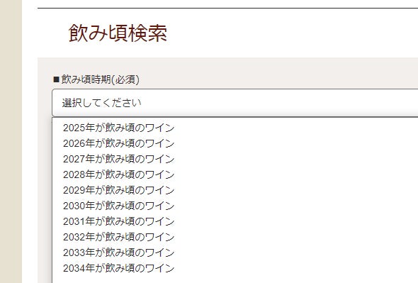 近未来10年間先まで、その年もまだ飲み頃期間中のワインが探せるようになりました。セラーで寝かせ、将来、数年後に開けるときまで期待感が続きます。