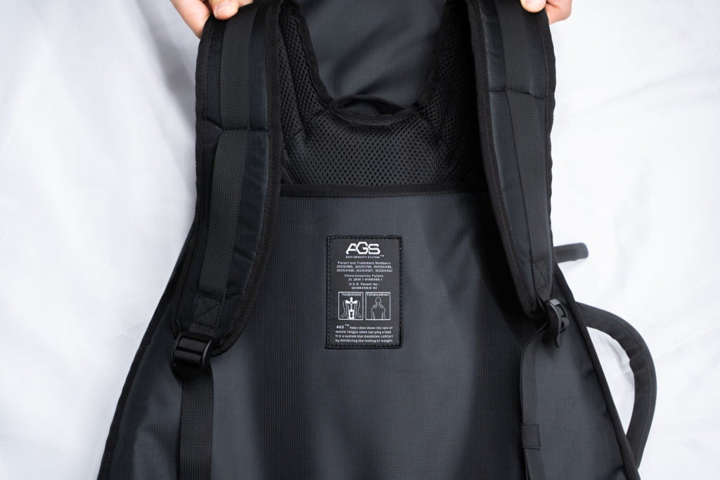 最大の特徴は、AGS搭載で歩いた時にショルダー部分がバネのように上下し、背負った荷物の重量が軽く感じられることです。