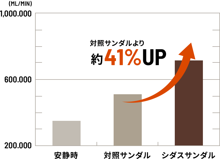 リカバリールームシューズとして一般医療機器に認められています。シダス独自の立体形状のアーチ構造が足裏の土踏まずを刺激して、足元から全身へ血流の循環を促進。これによって、筋肉の疲労回復を早め、むくみや冷えを軽減。