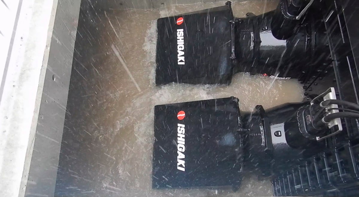 横軸水中ポンプで世界初の全速全水位運転を実現した浸水対策用ポンプ。