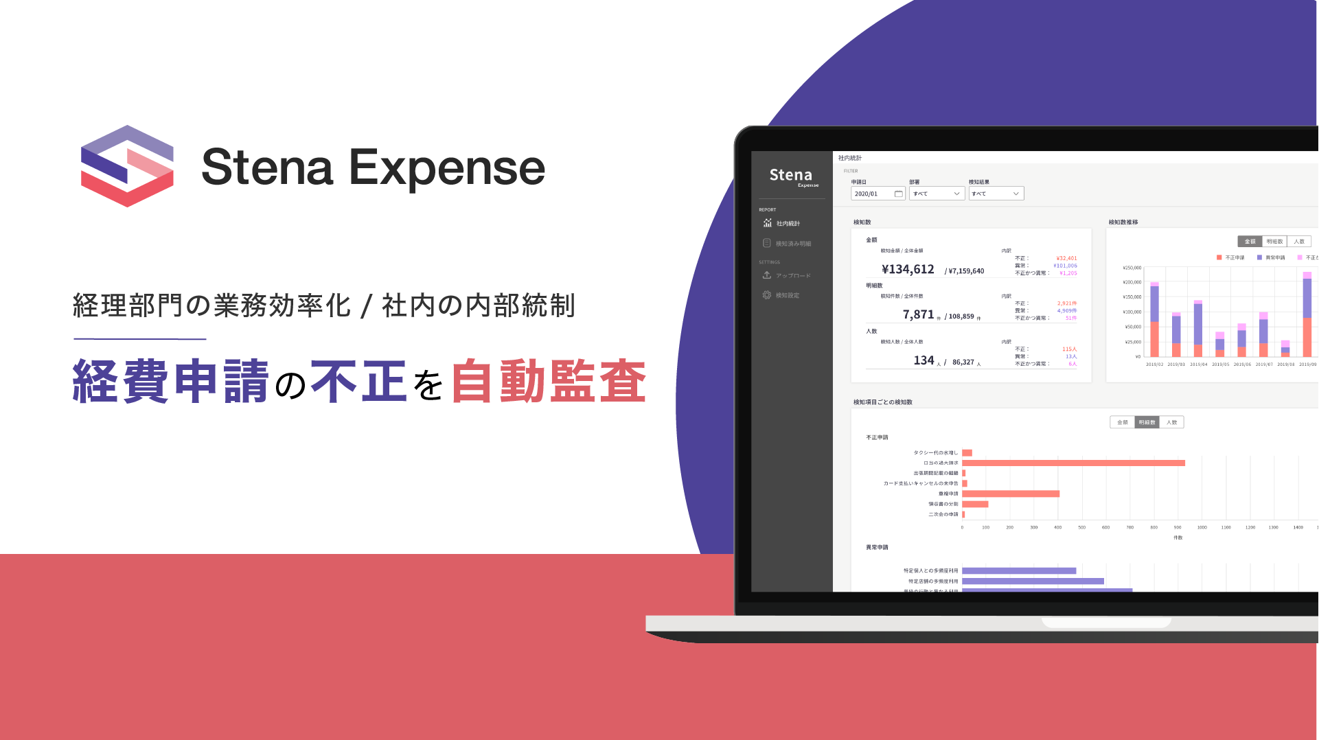 Stena Expenseは検知AIを搭載した、経費利用履歴や他者の申請傾向を踏まえて経費利用の不備や妥当性を網羅的にチェックする自動化ツールです。経理のチェック業務の効率化やガバナンスの強化を実現します。