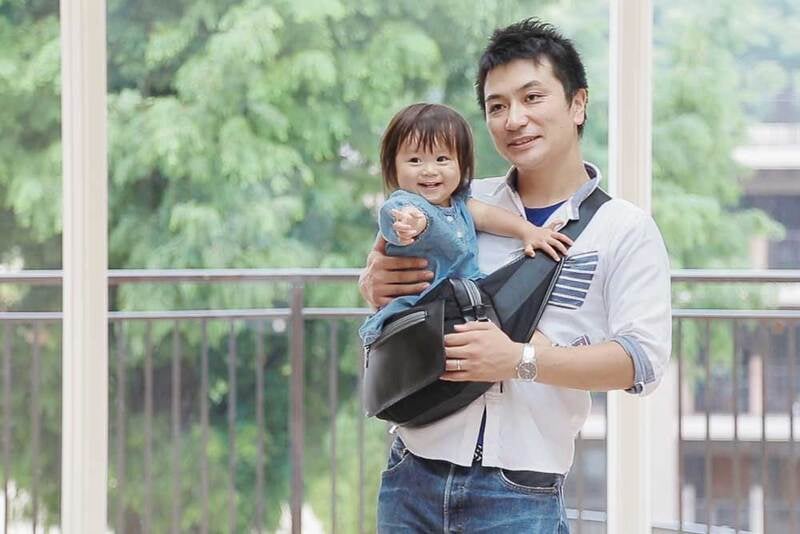 父親が乳幼児とのお出かけする際に必要となる哺乳瓶や水筒などの容器を固定収納でき、おむつやおしり拭きまも重ねずに収納できる。また、抱っこの補助としても使える強度も備えている。