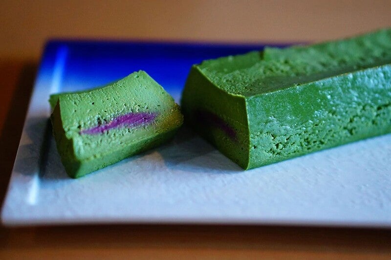 塩崎が考案したTOYO onlineで販売中の「八女茶のチーズケーキ」(2800円、税込・送料別)。日本の食材を使ったフランス料理というTOYOのコンセプトを、塩崎はEC商品の世界でも追求している。