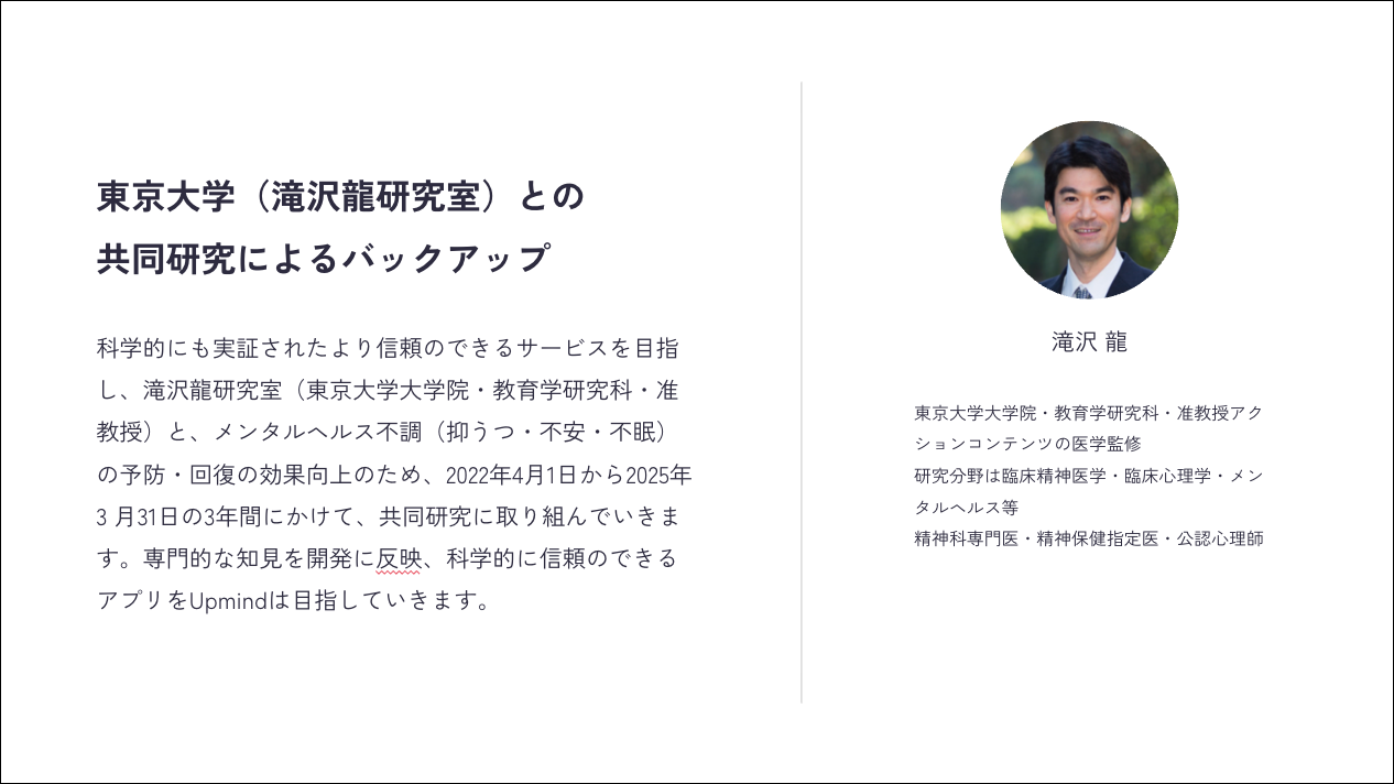 「心に余白をもって幸せに生きる」。東京大学発のマインドフルネスアプリ「Upmind」の開発ストーリー