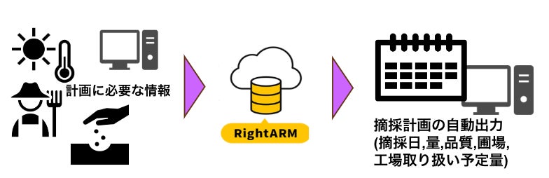 宮崎県に本社を構え、さまざまなデータ活用を通じた「儲かる農業」の実現を支援しています。経営管理クラウドサービス「RightARM(ライトアーム)」により、農業を取り巻くあらゆるデータをクラウド上で⼀元化して分析し、収穫量の増加や市場評価の⾼い出荷時期といった経営判断に役⽴つ情報のアウトプットを⾏っています。