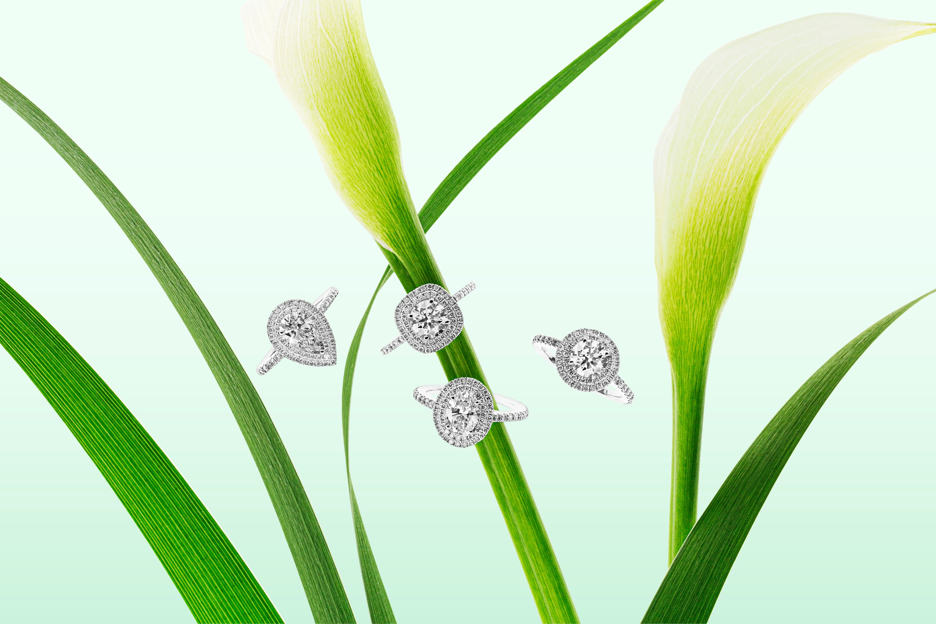 4枚の花弁がダイヤモンドを支えるシンプルながら洗練されたデザイン。