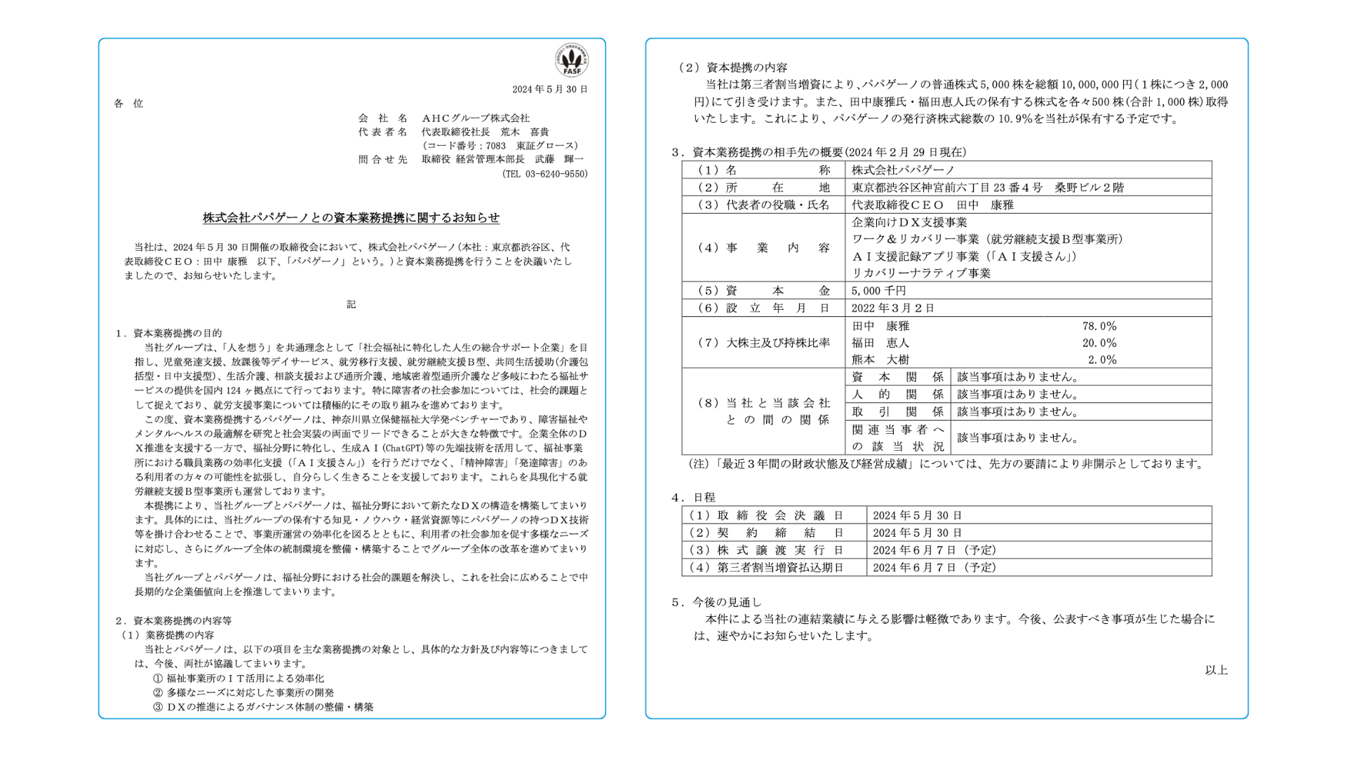 2024年6月27日 09時00分 株式会社パパゲーノ