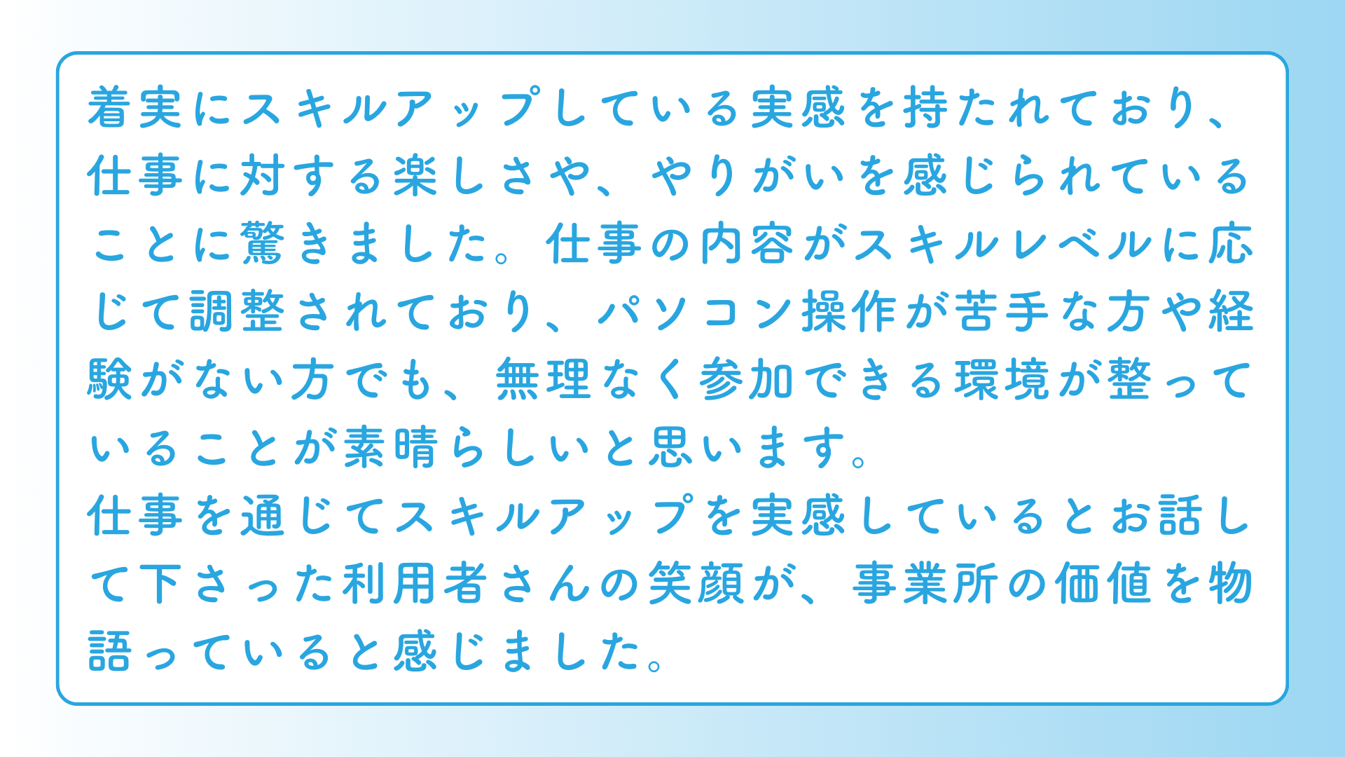 「パパゲーノ Work & Recovery」は、東京都杉並区にある主に「精神障害」「発達障害」のある方がパソコンを使ってITスキルを学び、自分らしく生きることを応援する就労継続支援B型事業所です。1人1人の希望や体調にあわせて、自分のペースで働くことができます。