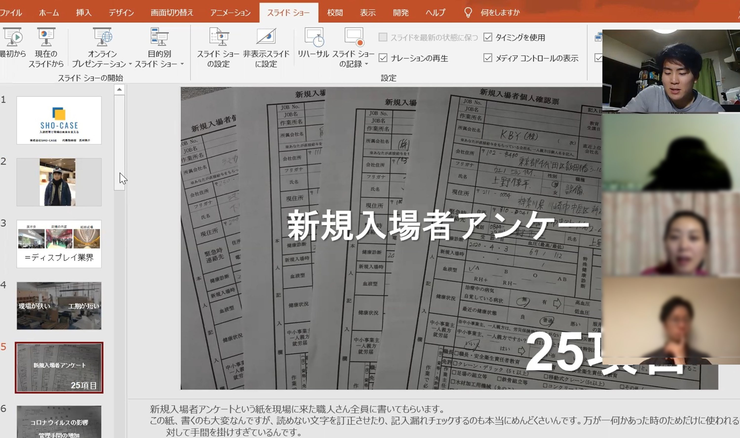 「SHO-CASE」はスマホを使って新規入場者調査票に記入する項目を登録し、現場に到着したら、現場監督が発行したQRコードをスキャンするだけで簡単に入退場管理ができます。