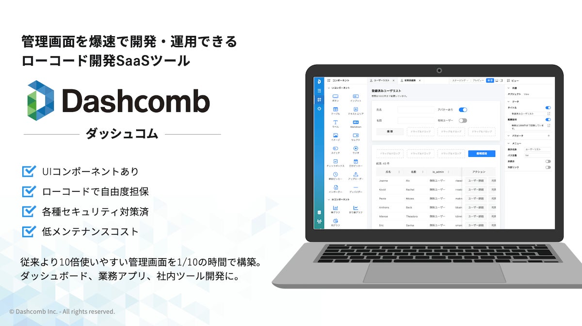 管理画面を低コストで瞬時に開発、運用可能にする利便性の高いローコードツール『ダッシュコム』。日本企業をターゲットにする企業戦略に迫る。