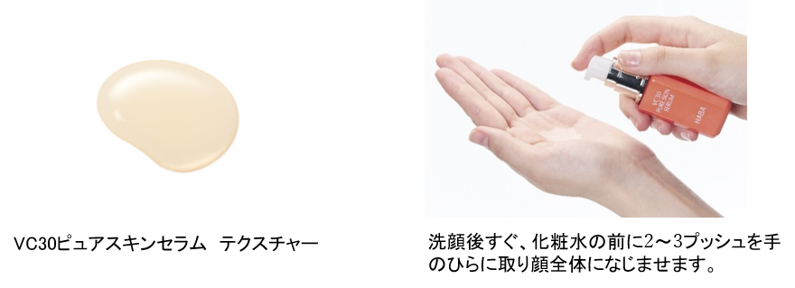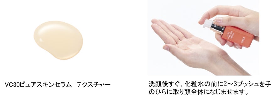 「VC30ピュアスキンセラム」は、安定性の高いビタミンC※5(整肌成分)に加え、保湿成分加水分解コラーゲン、ゆずセラミド※6、ノイバラエキス※7を配合。乾燥、くすみ※8、ハリ、ごわつき、キメ、毛穴※8と、多発する大人の肌悩みをケアして、うるおってハリつやに満ちた、毛穴レス肌※9に導きます。つるんとしたむきたて卵肌を目指します。パッチテスト済み※10なので、安心してお使いいただけます。