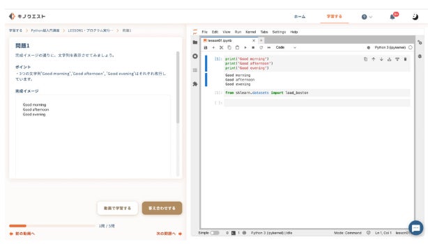キノクエストでは、初心者の方はまず動画で知識をインプットして、動画で学んだ内容に即した問題を解きます。