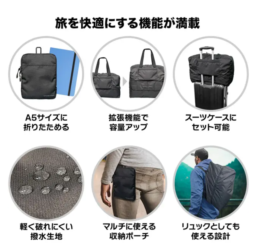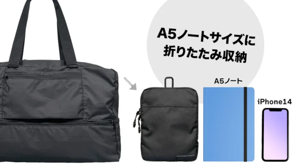 60Lに拡張可能!A5サイズに折りたためる軽くて丈夫な大容量ビッグボストンバッグ