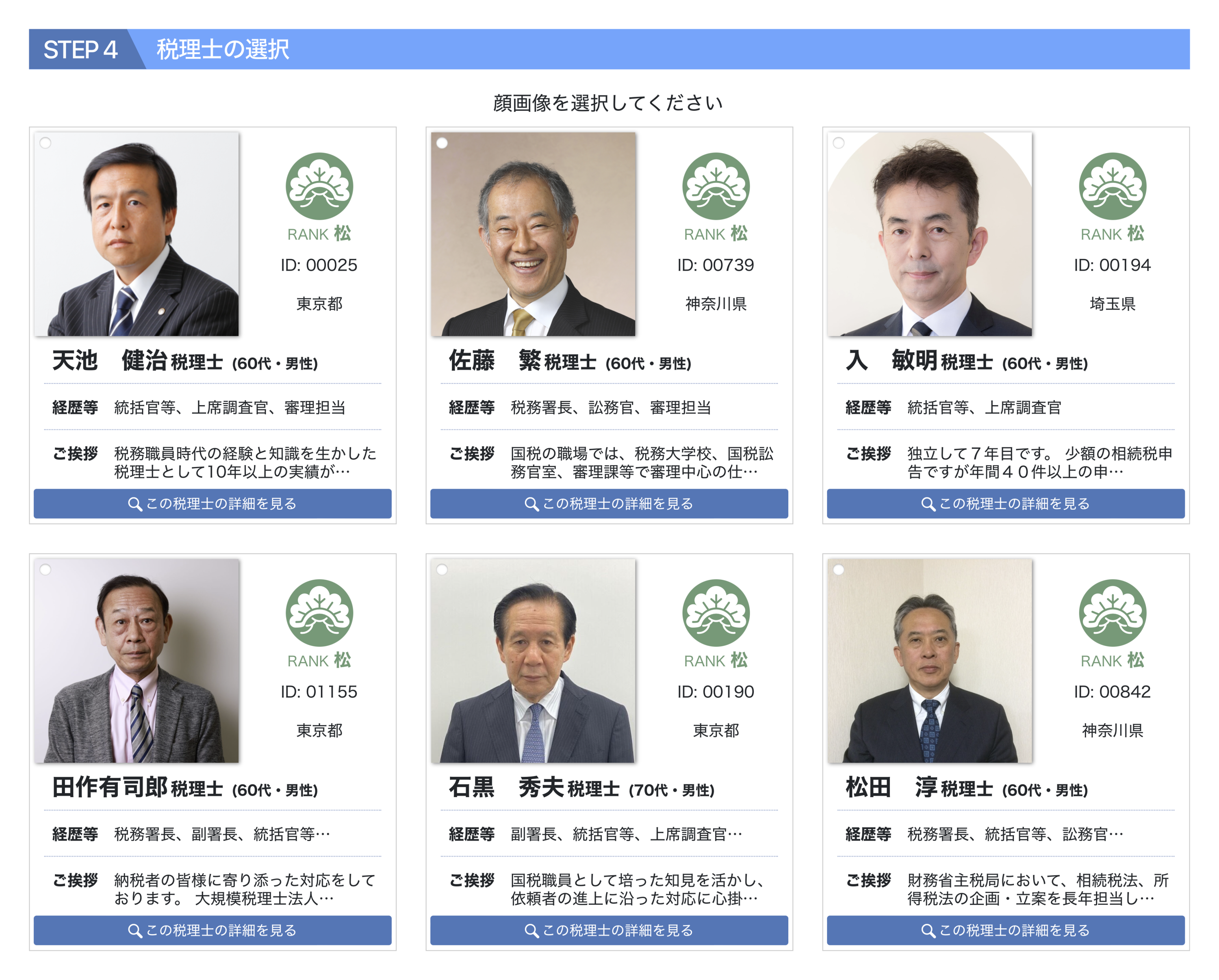 当サイトでは、お客様のご要望する国税出身の税理士がその税理士の具体的な税務経歴や申告実績などを確認してから依頼することができ、依頼した税理士本人が直接、最後まで対応します。