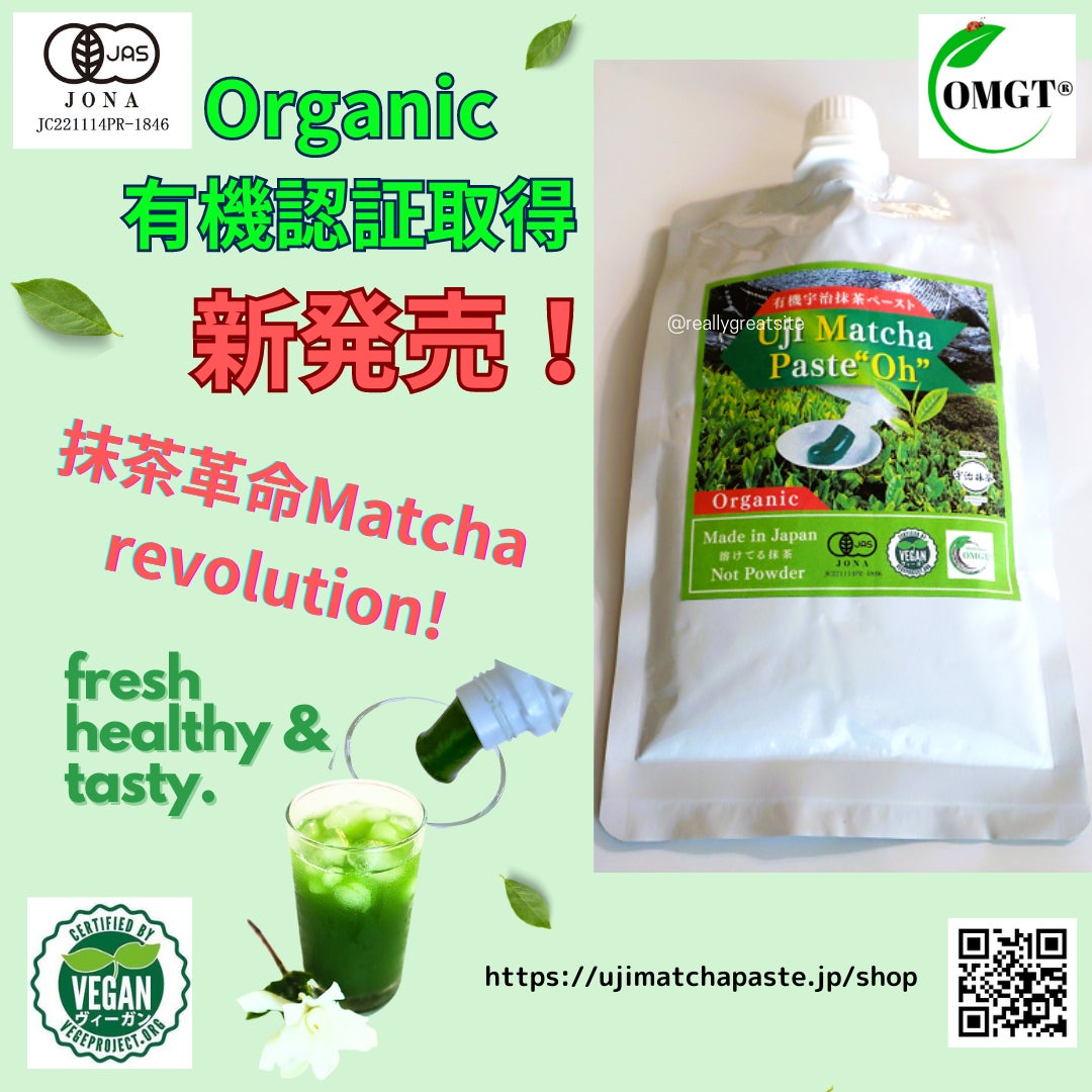 抹茶は、茶葉を丸ごと粉砕して食べるので、無農薬・無化学肥料の有機栽培茶が安心です。中でも、抹茶の本場宇治・日本緑茶発祥の地である宇治田原大福谷の有機栽培歴の長い茶園の有機宇治抹茶をペーストにしたのが、OMGT宇治抹茶ペースト”Oh”です。