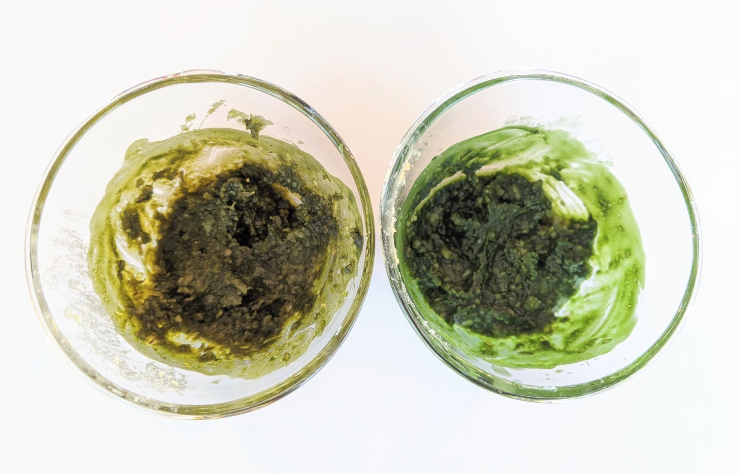 粉の抹茶は熱に弱く、放置すると変色し、湿気を吸って劣化します。けれども、OMGT宇治抹茶ペースト”Oh”は、ペースト状なので溶けやすく、光にあてても抹茶色のままです。