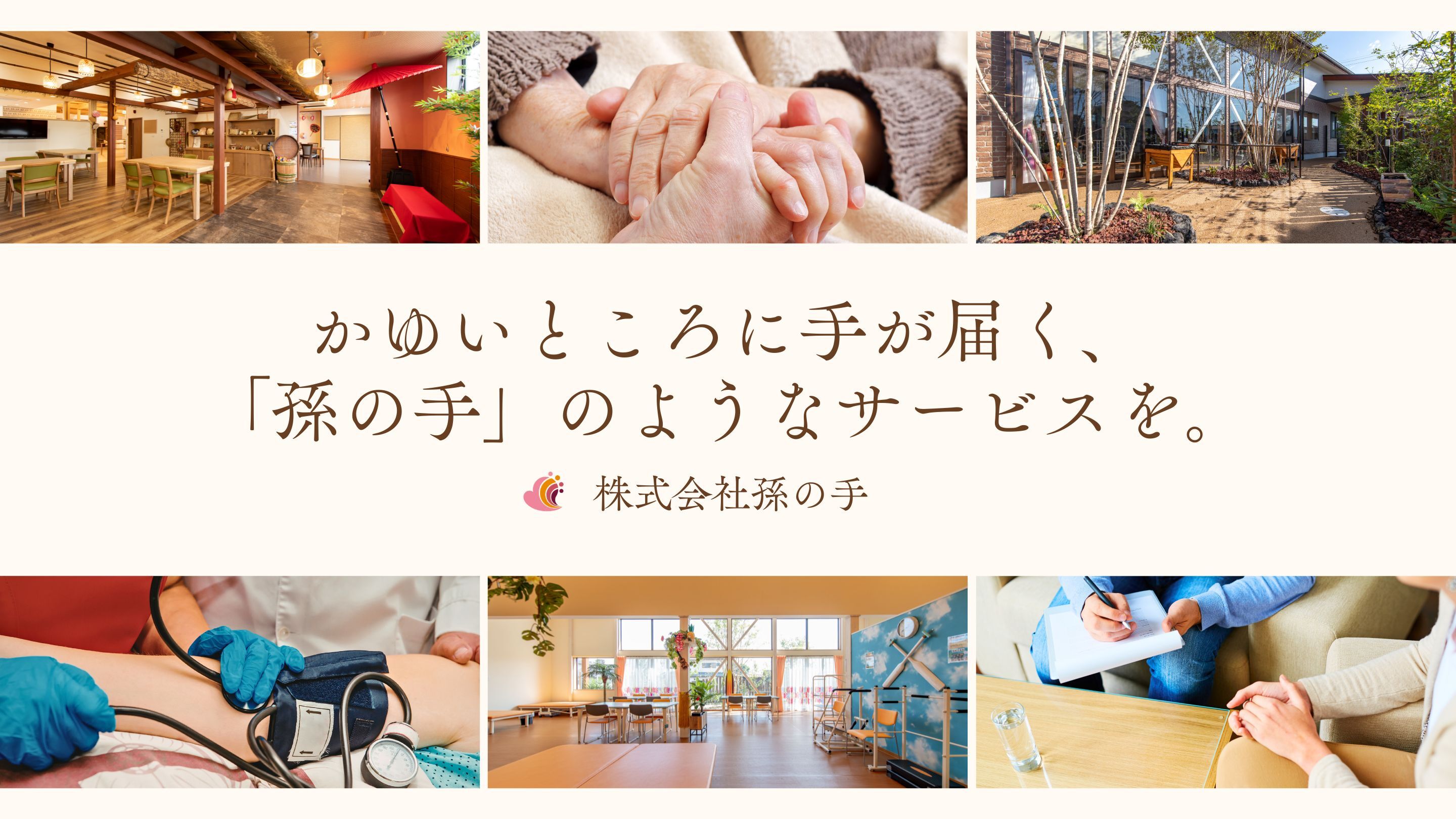 孫の手は、「かゆいところに手が届く、孫の手のようなサービを。」を掲げ、デイサービス、訪問看護、居宅介護支援などを通して、地域の在宅生活を支える医療・介護サービスを展開しています。創業以来、「最期まで住み慣れたお家で暮らしたい」という想いに寄り添い、一人ひとりに合わせた支援を行ってきました。看護師や理学療法士などの専門職が多く在籍し、手厚いケアや個別リハビリを提供できることも強みです。今後は既存事業の拡大に加え、介護予防や現場発のAI開発などを通じて、より良い地域福祉の実現を目指しています。