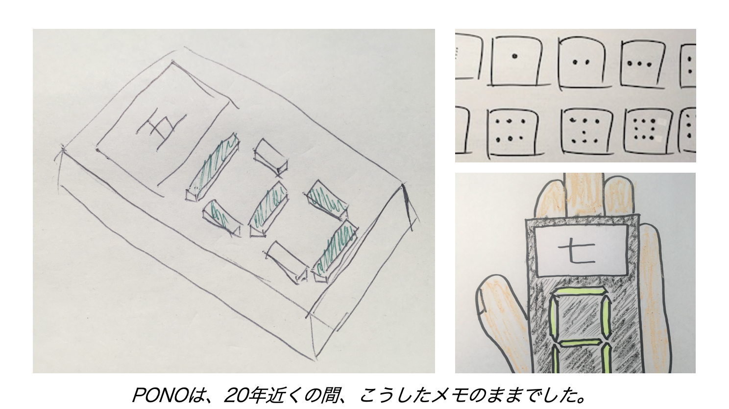 数字の指示を、デジタル数字を形どる7つのスイッチで表すゲーム。本ゲームシステムは、2023年6月に特許を取得。「ポノ」とは、ハワイ語で「自分と調和する」という意味。勝ち負けもなく、終わりもなく、どんな人でも完全に自分のペースで遊べる点において、既存のゲームとは一線を画する“ゲームらしくないゲーム”。