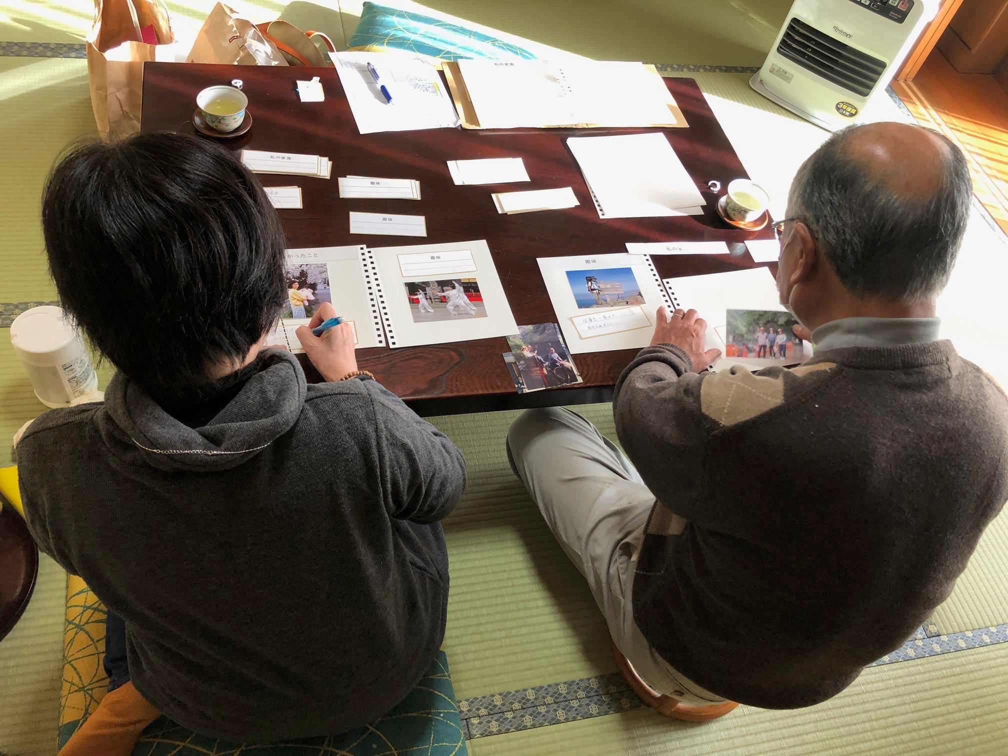 アルバムを作って終わりではなく、作成したアルバムを使って親御さんと会話し、親孝行のひとつとして、かけがえのない時間を過ごす事ができるのがこの回想アルバムです。