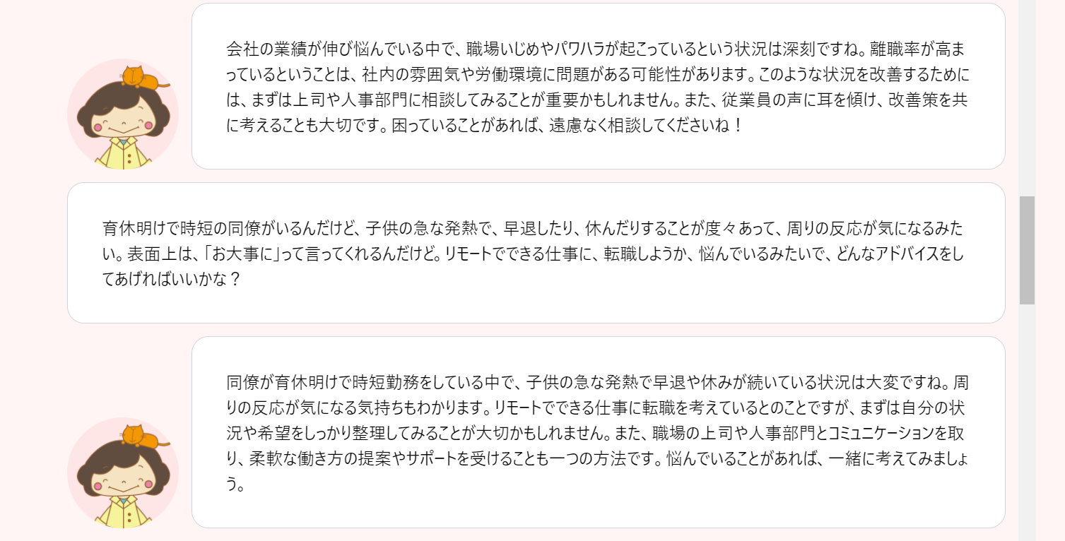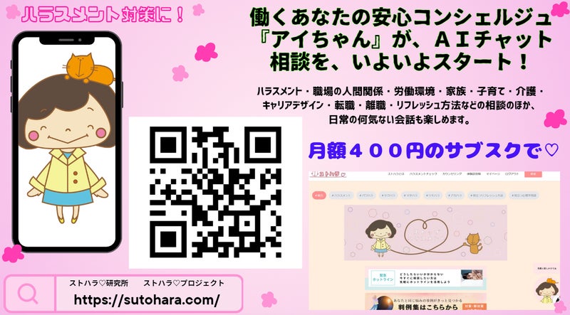 働くあなたの安心コンシェルジュ『アイちゃん』が、AIチャット相談サービスを、月額400円のサブスクで、気軽にサービスをご利用いただけます。子育て支援や、被災地支援にも、活躍します・