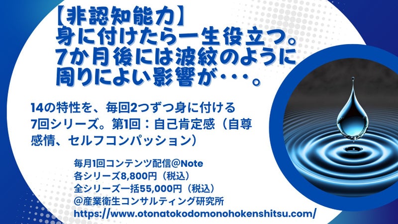 7回のシリーズで自己肯定感・自己効力感を含む14の非認知能力を学び、7か月後にはあなたの内面から自然に人間力が溢れ出ていることでしょう。この力は周囲にもポジティブな影響を与えます。7回シリーズは、「note」から毎月1回、コンテンツの有料配信(各回8,800円)が行われます