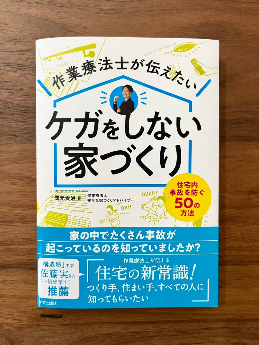 初の書籍「作業療法士が伝えたい ケガをしない家づくり~住宅内事故を防ぐ50の方法~」(学芸出版)が全国書店、Amazonなどで好評発売中。
