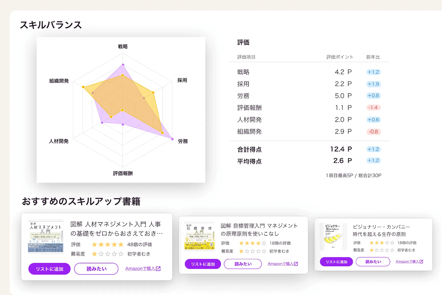 スキルアセスメント機能やリアクション機能を取り入れ、学びを身近に感じてもらえるようUI開発中。