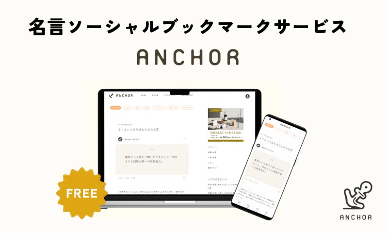 「Anchor」は「ことばが、心の錨になる」をコンセプトに作られた国内最大級の名言ソーシャルブックマークサービスです。