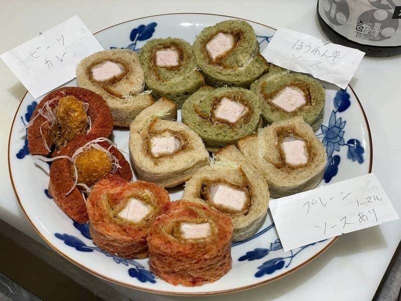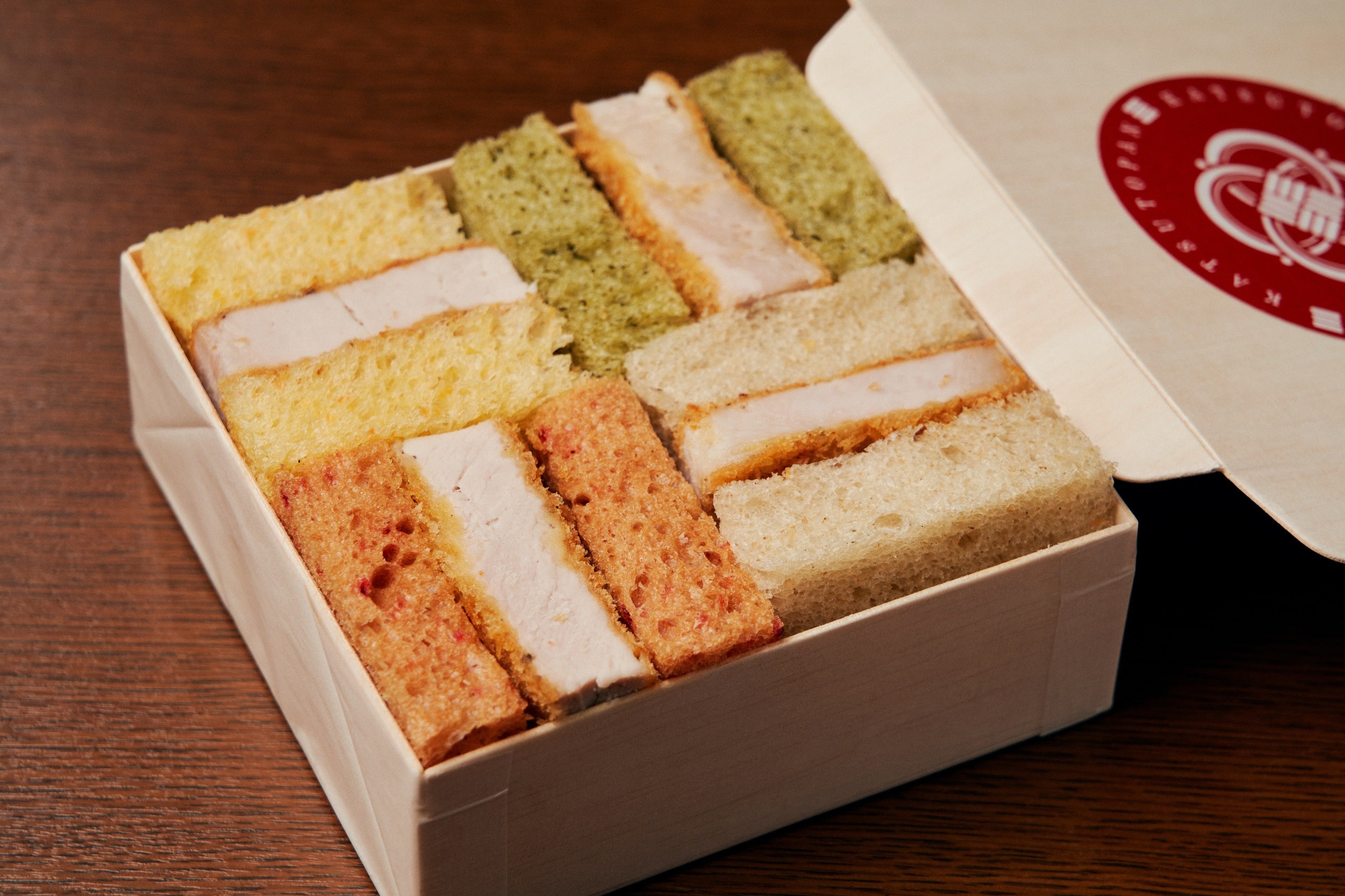 元の良さはそのままに「もっと美味しく、もっと楽しく」進化出来ないか。そう考え、厳選のこだわり野菜を練り込み色味と風味を加えた「天然酵母野菜食パン」を作り、さらに味付けはオリジナルソースに加え、タルタル・トマト・カレーを追加。見て楽しく食べて美味しく縁起も良い、新しいカツサンド。 税込1380円