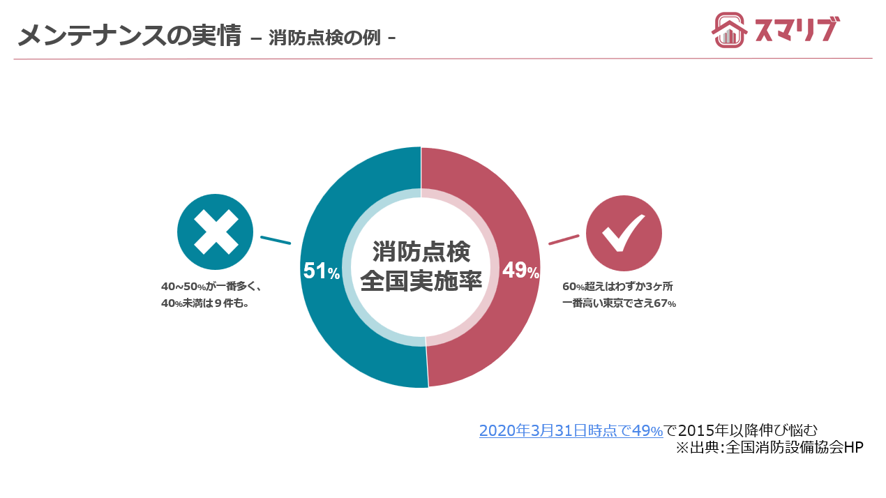 実施率が高くなると、建物の保全効果も上がり、未然に火災や事故も防ぐ事ができます。