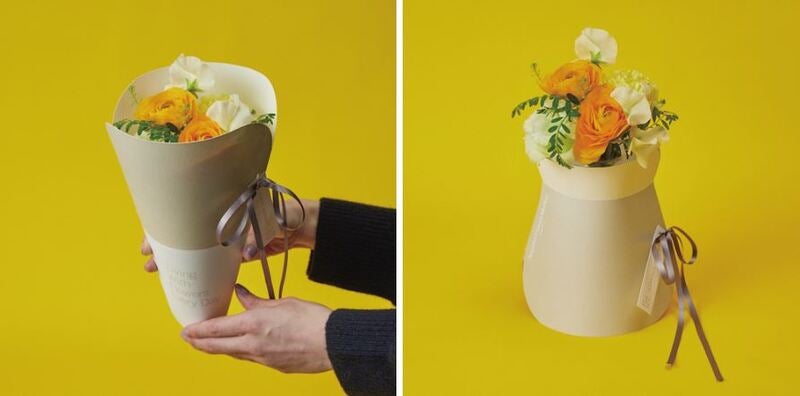 デザインオフィス「nendo」との共同開発でうまれたクレープブーケは、パッケージを花瓶代わりに使うことができる、嬉しい工夫がたくさんつまった進化系ブーケ。