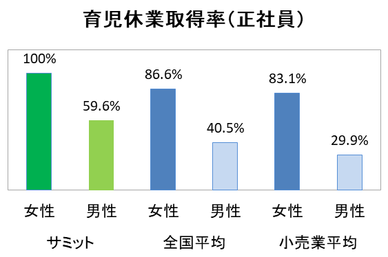 “制度”と“利用しやすい環境”で子育てを後押し ~育休取得率全国平均を上回るサミット(女性 +16.9%・男性 +29.7%)~
