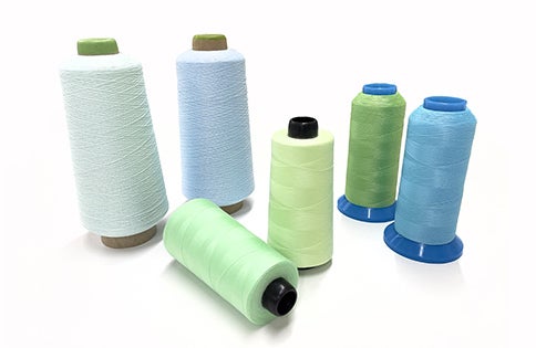 ペットボトルから再生したポリエステルを100%使用した業務用ミシン糸。