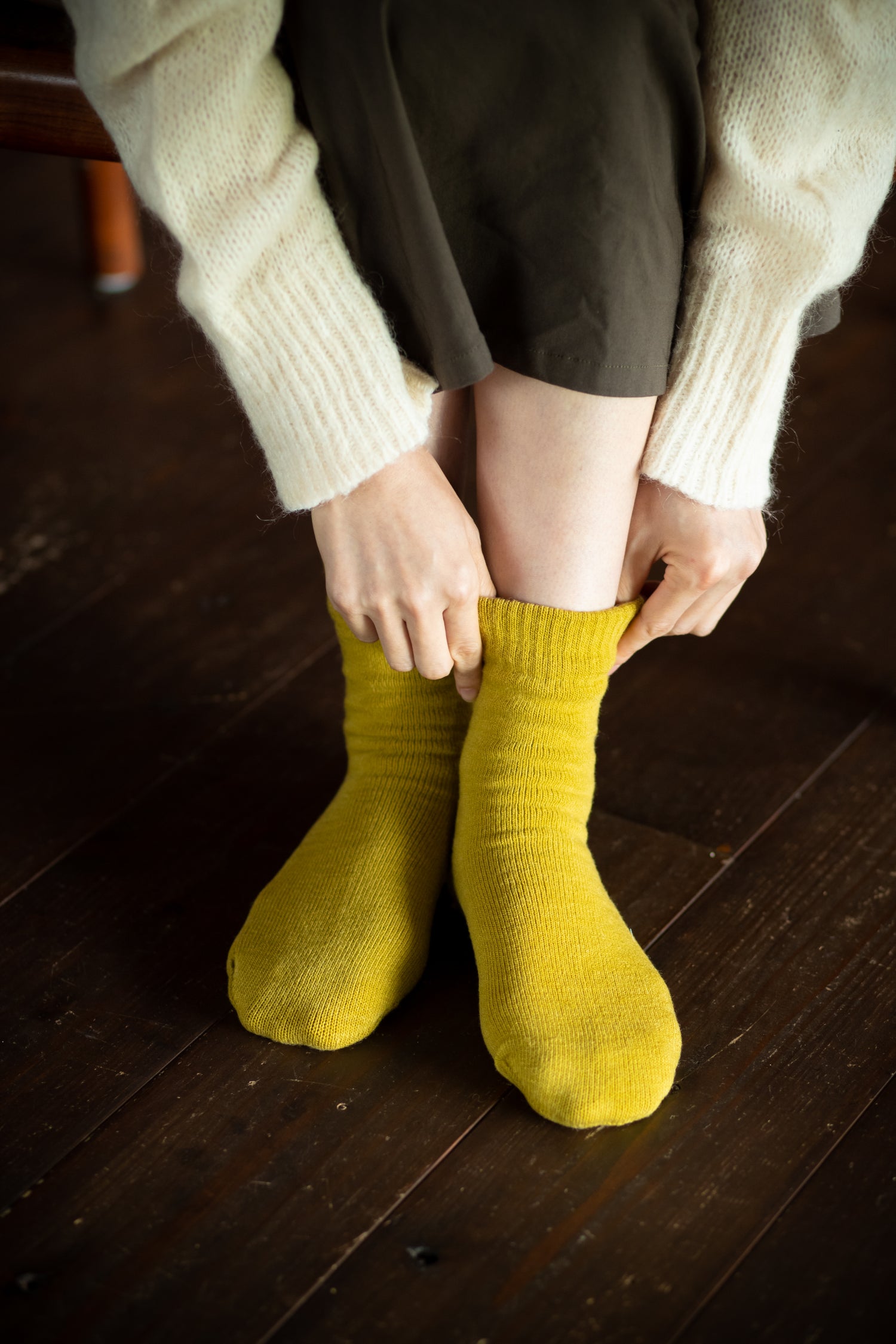 履いているだけでカカトを潤して足元を温める二重編み靴下。