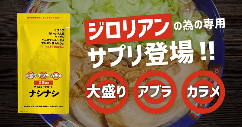 「G系ダイエットサポート ナシナシ」は、G系ラーメンと呼ばれる1杯で約2,000kcalの大盛りラーメンが大好きな「ジロリアン」の方の為に開発されたダイエットサポート食品です。「ラーメン店の収益拡大サポート」の第1弾として、店頭のレジ横や券売機の空きスペースを活用して販売を行い、売上の2/3がラーメン店の収益となります。現在、「宅麺.com」の一部パートナー店舗(全国14店舗)にて販売を開始しており、今後2022年3月までに全国100店舗での販売を目指しております。