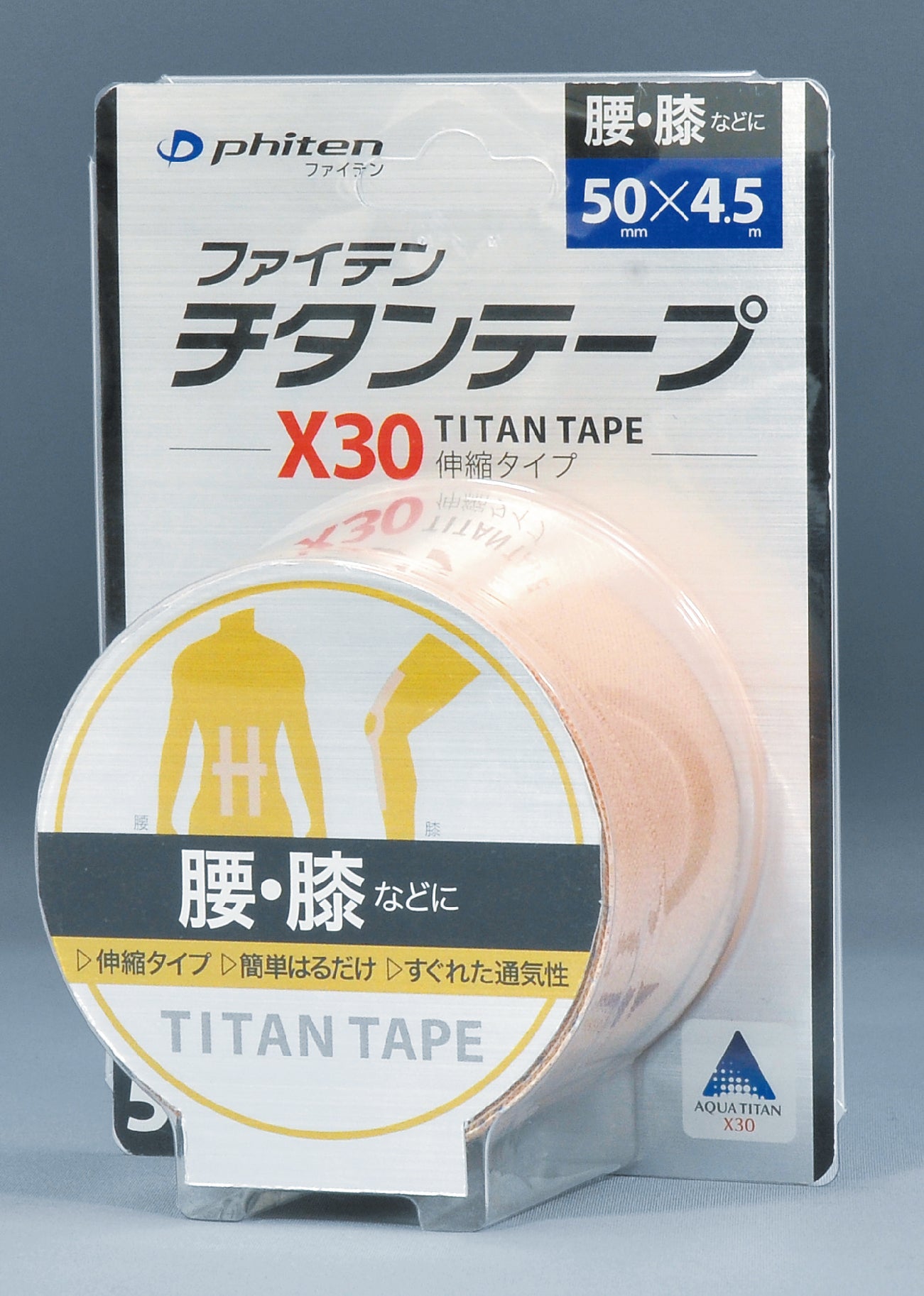 チタン(炭化チタン)を粘着面にコーティング。指で押して気持ちいいところ、違和感のあるところにピタっと貼るだけ。