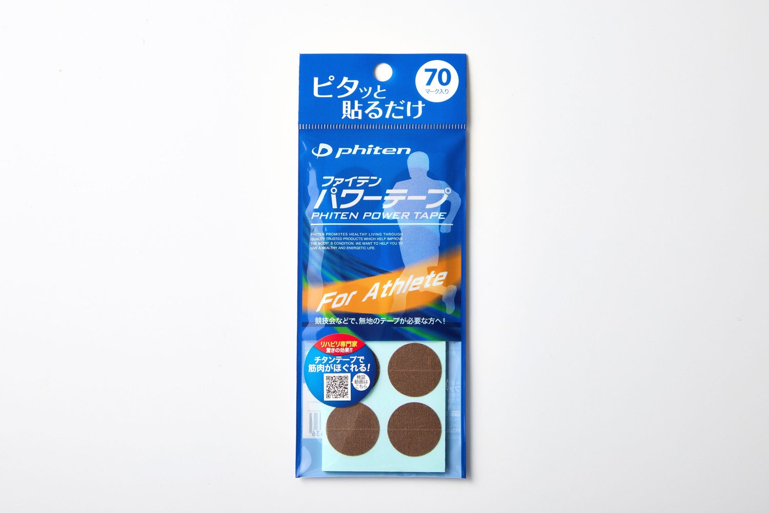 発売以来の超ロングヒット商品!手軽で使いやすい丸シールタイプのボディケアテープ。全ての競技・各大会で競技ルールに対応できる「無地タイプ」でアスリートをサポート。