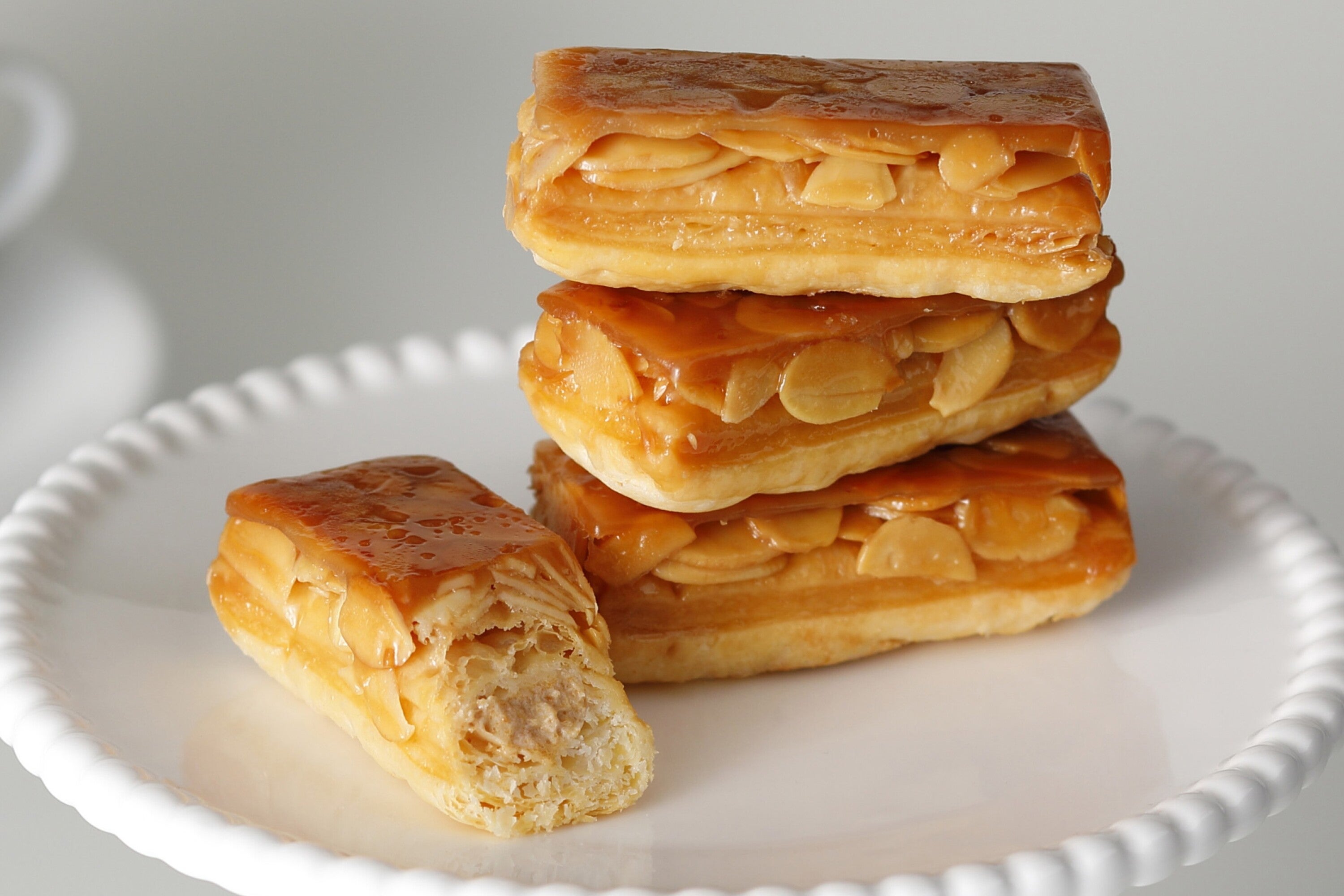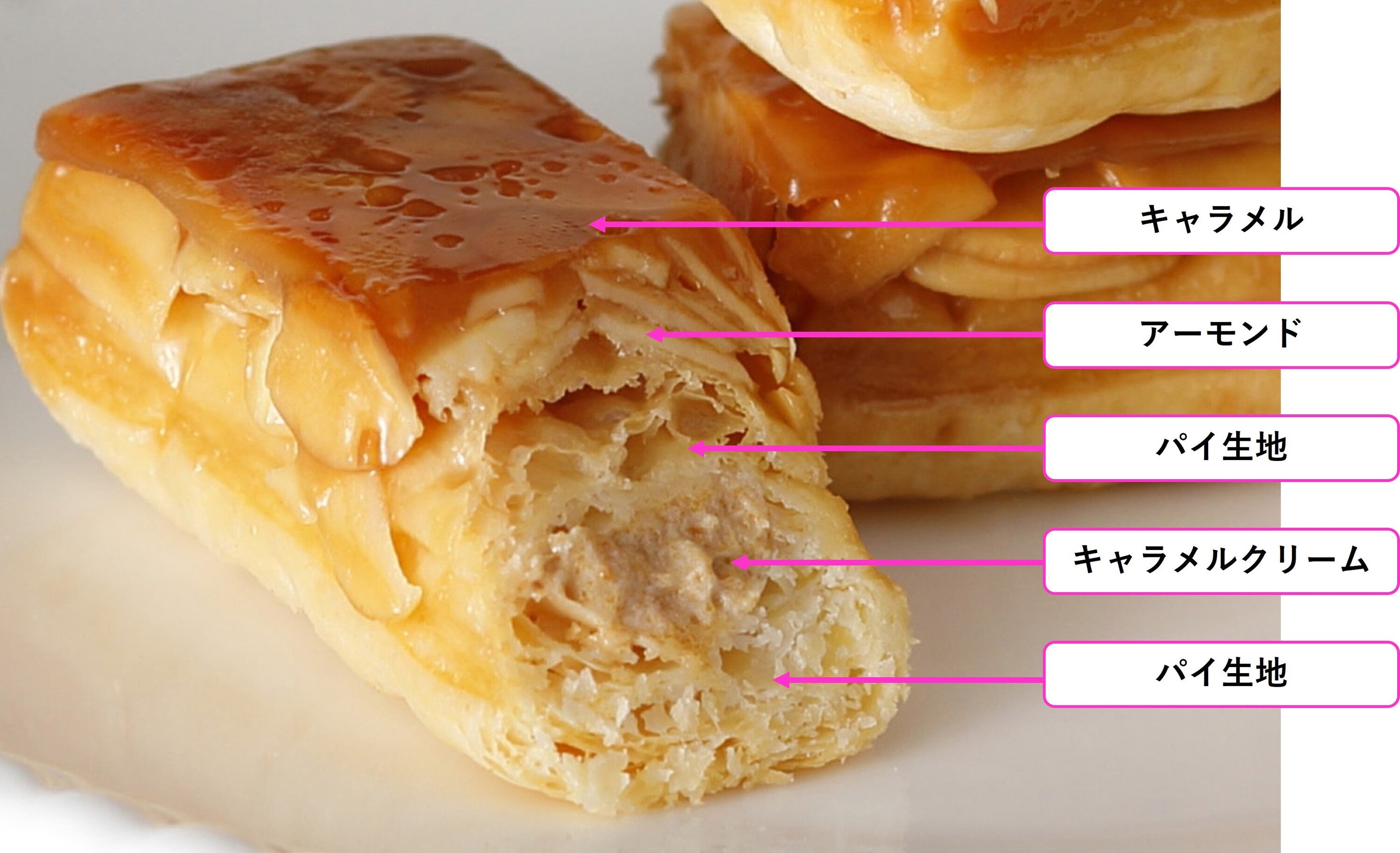 風味豊かなバターを使用したパイ生地とキャラメルクリーム、アーモンドスライスとキャラメルのハーモニーが織りなす至福のひとときをお届けする焼き菓子です。