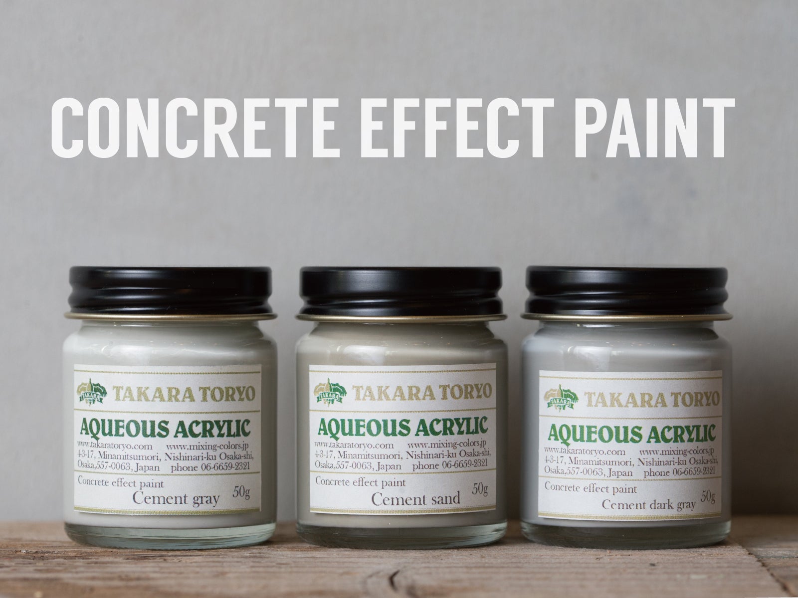 3色の塗料を塗り重ねていくだけで、簡単にコンクリート風の表現ができる「コンクリートエフェクトペイント」。