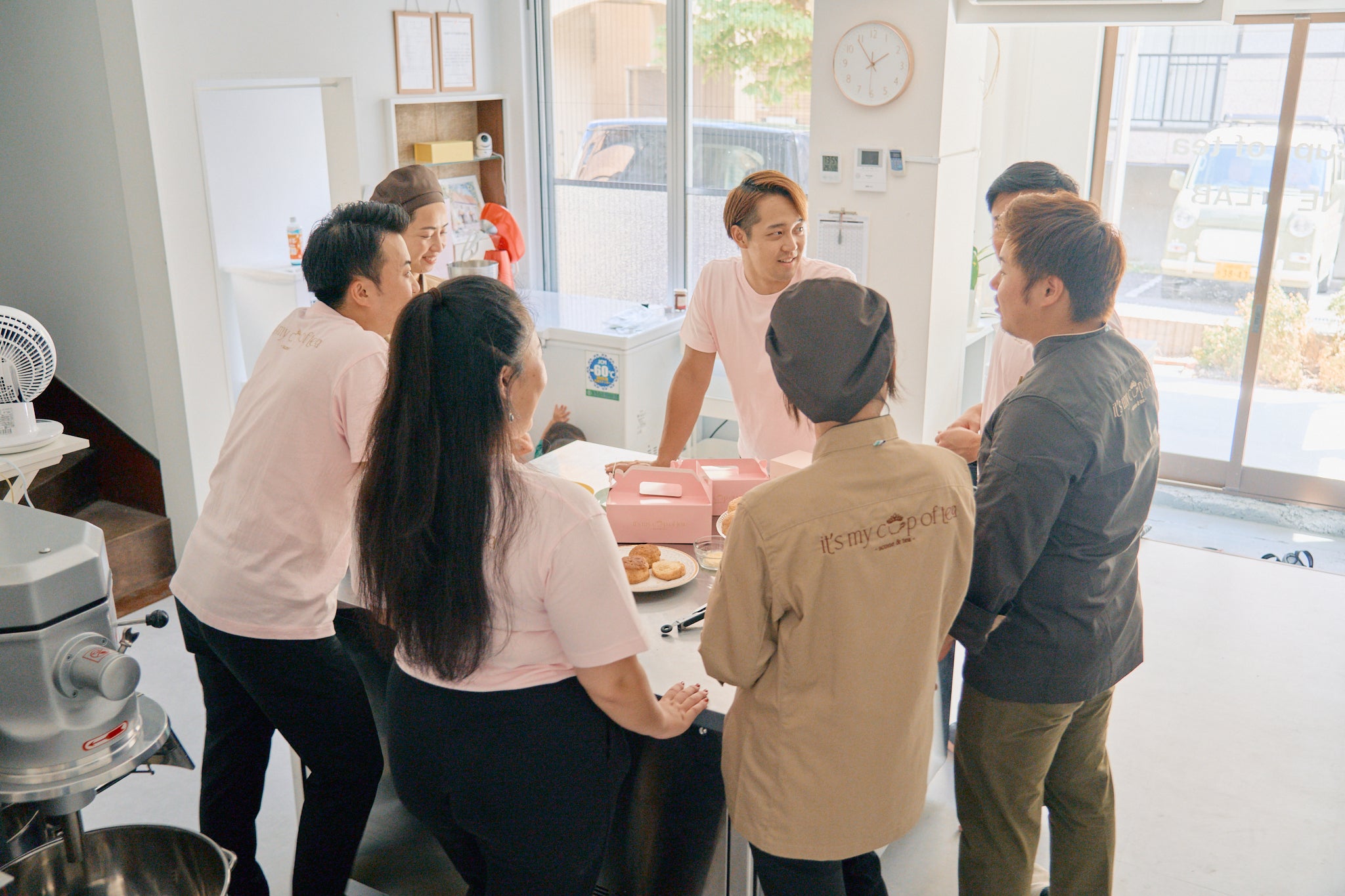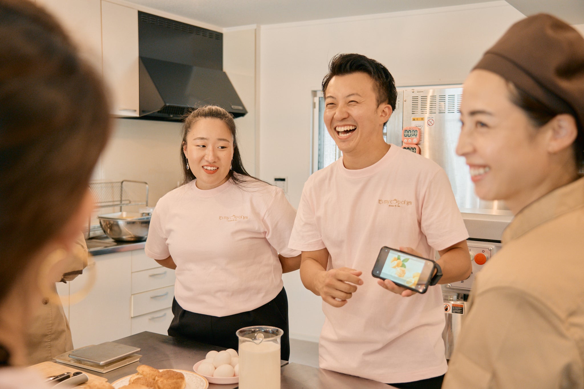 スコーンの開発過程は、シェフの斎藤氏、上田氏、そして株式会社ラジャの専門チームによる共同作業で進められました。