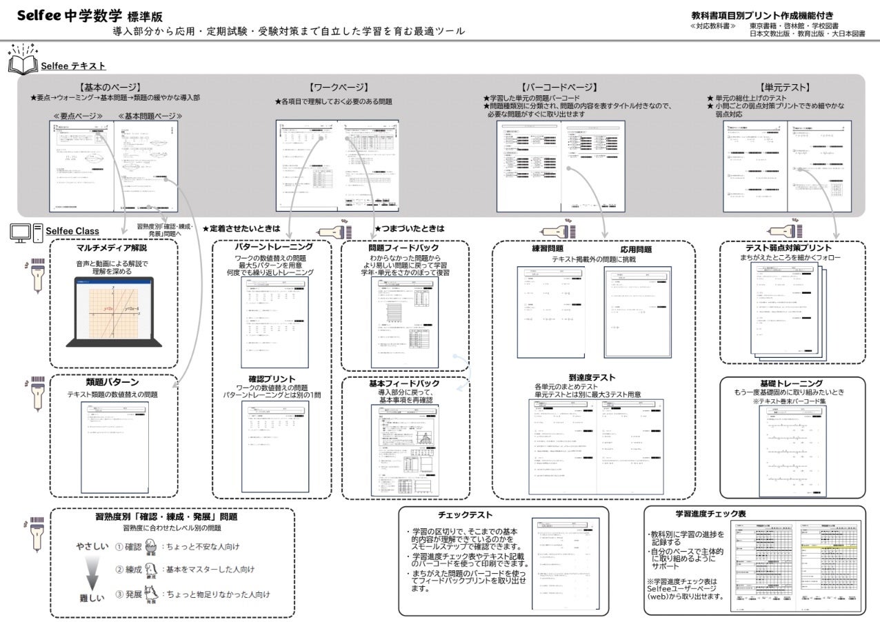 Selfeeは、そうした確かな教材の中から選りすぐりのものを組み合わせ、学習塾運営に適したパッケージにしたサービスです。