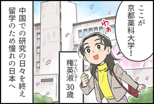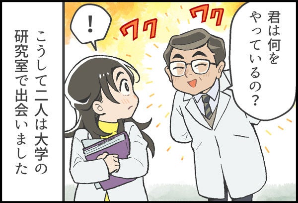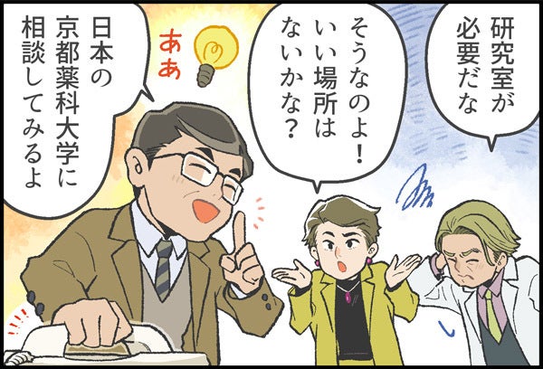 桜の国で出会った二人の研究者。ここから世界に挑むストーリーが始まった。マンガで見る「コスメディ製薬物語」 第一話