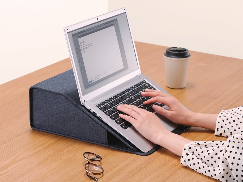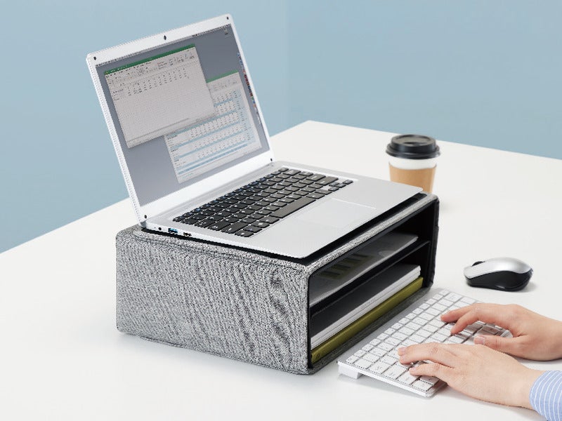 ノートPCやファイルなどオフィスで必要なものをまとめて持ち運べるバッグでありながら、机上に展開してノートPCスタンドとしても活用できるバッグ。