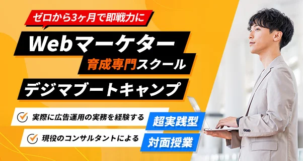 「デジマブートキャンプ」は、WEBマーケティング未経験から3ヶ月で即戦力化を可能にするキャリア支援型のWEBマーケティングスクール。
