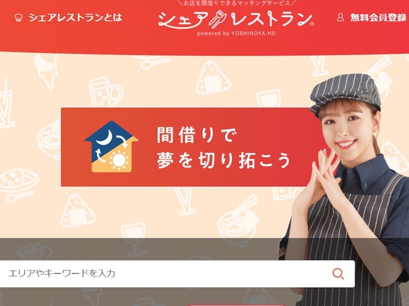 間借り開業希望者と飲食店オーナーを吉野家HDがマッチング。初期費用無し、水道光熱費や保険料など全て込々、月額利用料金だけで安心スタート可能なサービスです。