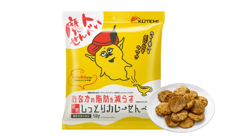 ジュワっとスパイシーなカレーが口いっぱいに広がる、ぬれせん仕立てのおせんべい。カレーソースに忍ばせたブラックジンジャー(機能性関与成分:ブラックジンジャー由来ポリメトキシフラボン)が、おなかの脂肪(内臓脂肪・皮下脂肪)を減らします。