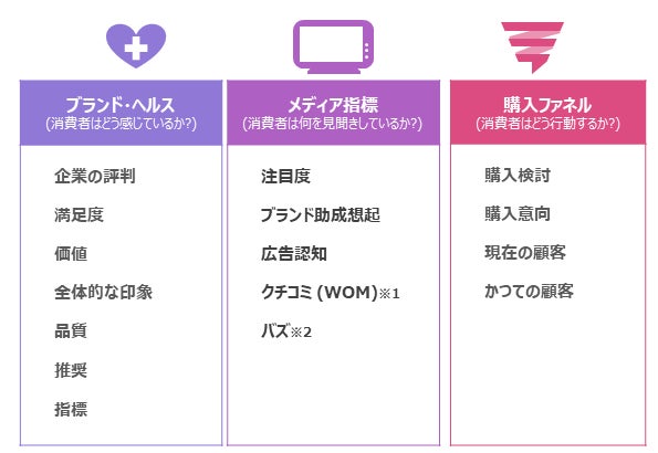 「BrandIndex」は、様々な業界のブランドの健康診断状況を、リアルタイムで見える化できるツールです。対象ブランドが一般消費者からどのように受け止められているかを株価グラフのように日々の動きとして指標で表すことができます。データベースには世界各国の約1万5000のブランドに関するデータが毎日、10年以上トラッキングされ、蓄積されています。本ツールを利用するユーザーは、様々な条件でデータを引き出して見ることができます。