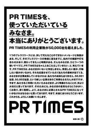 企業とメディア、そして生活者をニュースでつなぐインターネットサービス「PR TIMES」の利用企業数が、5万社を突破する節目に際し立ち上がったプロジェクトです。
