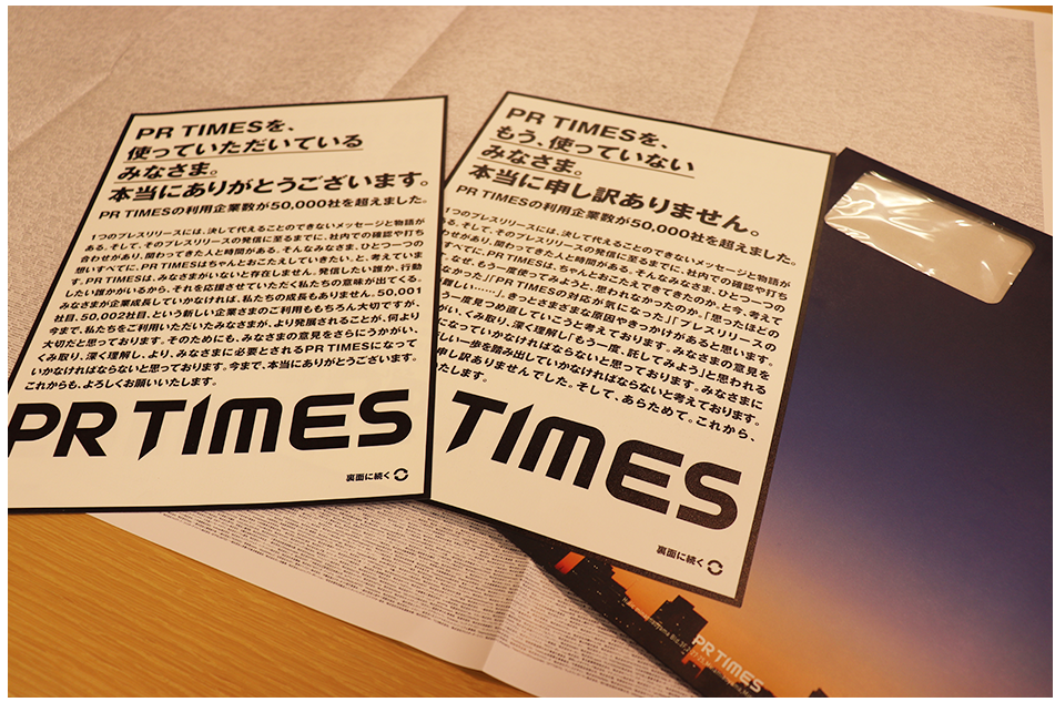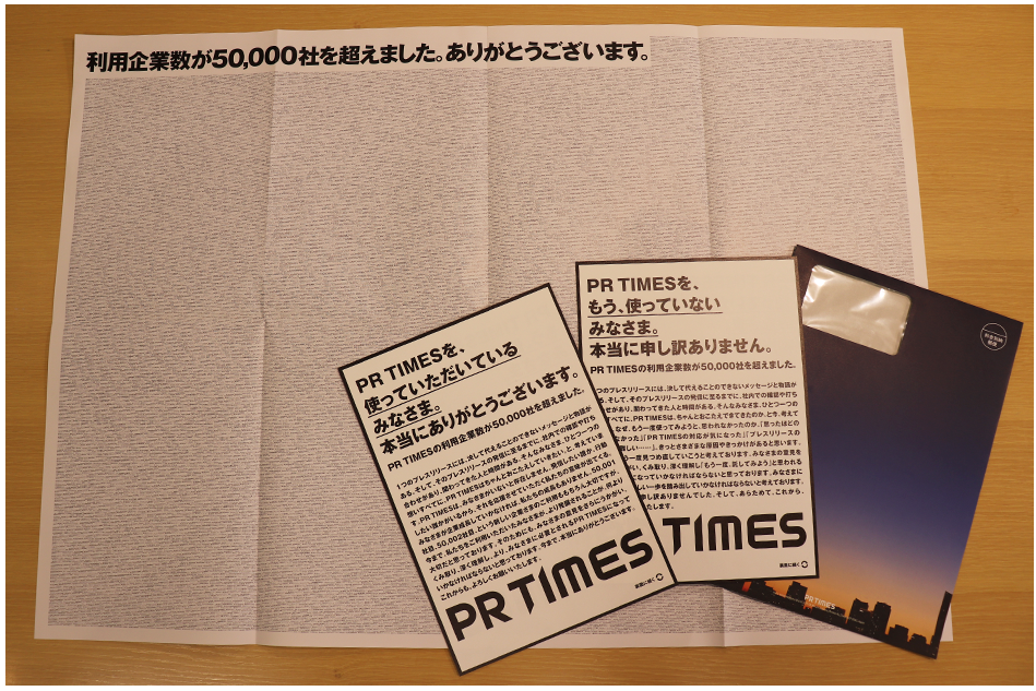 5万という数字を積み上げていただいたご利用企業の皆さまに向けて、感謝とお詫びをお届けするために、その想いと、利用企業すべての社名をA1サイズの用紙に記載した一覧を配布し、ご利用企業の皆さまを中心にSNSなどで話題を呼びました。