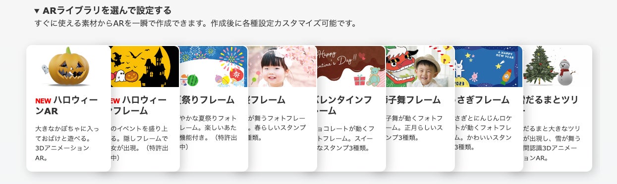 QRコードやリンクを開くだけでカメラが起動し、 専用アプリなしでAR(拡張現実)コンテンツを体験できます。